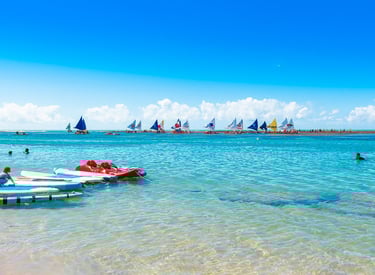 Conhecida pelas piscinas naturais formadas entre os recifes, águas mornas e transparentes durante grande parte do ano, a praia combina estrutura, gastronomia, comércio ativo e fluxo constante de visitantes.