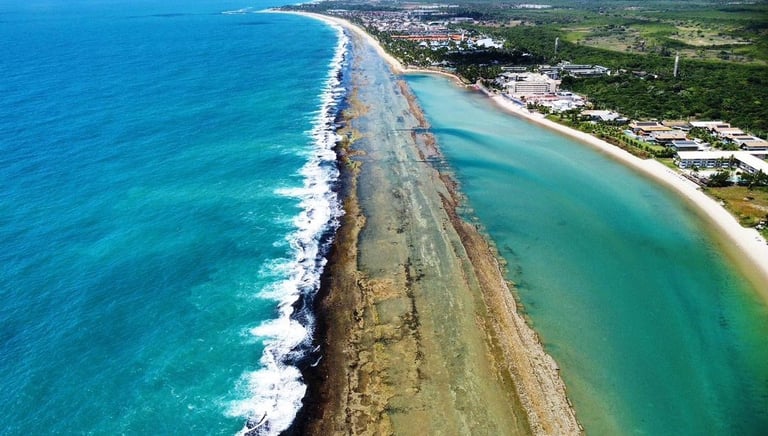 Sua extensa faixa de areia protegida por uma barreira natural de arrecifes forma uma grande piscina natural de águas calmas, ideal para famílias e para quem valoriza privacidade.